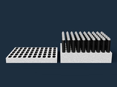 50pcs devices and 50pcs mouthpieces are packed in foam inserts.